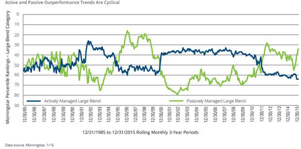 At BFM, we often recommend investing (for some asset classes) in low-cost passive index funds/ETFs to gain market exposure for a very low fee and less tax liability. But since many of our clients have a long term view we may also recommend active fund managers (especially in the international asset class which may be less efficient) because: