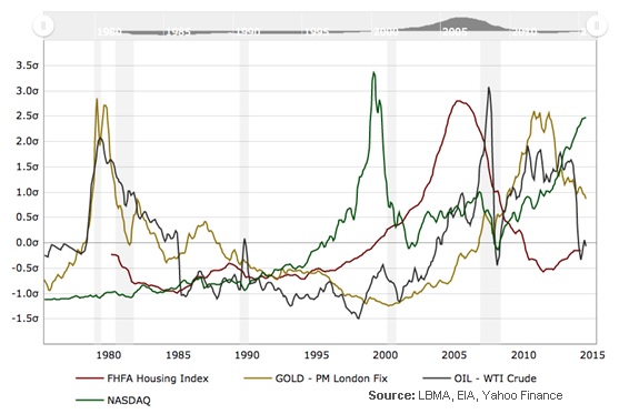 MSCI EM Relative to U.S. and Dollar Index (DXY) (1988-2016)